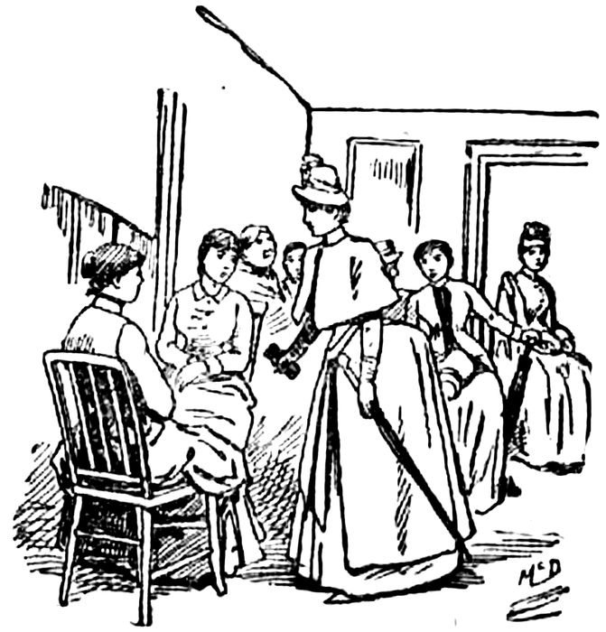 IN THE INTELLIGENCE OFFICE. A young woman who was standing with a downcast head by the window turned to look at the abrupt newcomer. A man who had apparently been conversing with her came hastily forward to the desk. He was a middle-sized man, with a sharp, gray eye, a bald head, and a black frock-coat buttoned up tightly, showing to disadvantage his rounded shoulders. “Well?” he said to me, in a questioning manner, as he glanced quickly over my “get up.” “Are you the man who gets places for girls?” I asked, as if there were but one such man. 102“Yes, I’m the man. Do you want a place?” he asked, with a decidedly German twang. “Yes, I want a place,” I replied. “What did you work at last?” “Oh, I was a chambermaid. Can you get me a position, do you think?” “Yes, I can do that,” he replied. “You’re a nice-looking girl and I can soon get you a place. Just the other day I got a girl a place for $20 a month, just because she was nice-looking. Many gentlemen, and ladies also, will pay more when girls are nice-looking. Where did you work last?” “I worked in Atlantic City,” I replied, with a mental cry for forgiveness. “Have you no city reference?” “No, none whatever; but I want a job in this city, that’s why I came here.” “Well, I can get you a position, never fear, only some people are mighty particular about references.” “Have you no place you can send me to now?” I said, determined to get at my business as soon as possible. “You have to pay to get your name entered on the book first,” he said, opening a large ledger as he asked, “What is your name?” “How much do you charge?” I asked, in order to give me time to decide on a name. “I charge you one dollar for the use of the bureau for a month, and if I get you a big salary you will have to pay more.” “How much more?” “That depends entirely on your salary,” he answered, non-committal. “Your name?” “Now, if I give you a dollar you will assure me a situation?” “Certainly; that’s what I’m here for.” 103“And you guarantee me work in this city?” I urged. “Oh, certainly, certainly; that’s what this agency is for. I’ll get you a place, sure enough.” “All right, I’ll give you a dollar, which is a great deal for a girl out of work. My name is Sally Lees.” “What shall I put you down for?” he asked.