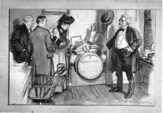 IXOur Loathed but Esteemed ContemporaryNo one remembers a time when there were not two newspapers in our town—generally quarrelling with each other. Though musicians and doctors and barbers are always jealous of their business rivals, and though they show their envy more or less to their discredit, editors are so jealous of one another, and so shameless about it, that the profession has been made a joke. Certainly in our town there is a deep-seated belief that if one paper takes one side of any question, even so fair a proposition as street-paving, the other will take the opposing side. Of course, our paper has not been contrary; but we have noticed a good many times—every one in the office has noticed it, the boys and girls in the back-office, and the boys and girls in the front-office—that whenever we take a stand for anything, say for closing the stores at six o'clock, the General swings the Statesman into line against it. If he has done it once he has done it fifty times in the last ten years; and, though we have often felt impelled to oppose some of the schemes which he has brought forward, it has been because they were bad for the town, and perhaps because, even though they did seem plausible, we knew that the unscrupulous gang that was behind these schemes would in some way turn them into a money-making plot to rob the people. We never could see that justification in the Statesman's position. To us it seemed merely pigheadedness. But the passing years are teaching us to appreciate the General better, and each added year is seeming to make us more tolerant of his shortcomings. Counting in the three years he was in the army, he has been running the Statesman for forty-five years, and for thirty-five years he was master of the field. For thirty years this town was known as General A. Jackson Durham's town. He ran the county Republican conventions, and controlled the five counties next to ours, so that, though he could never go to Congress himself, on account of his accumulation of enemies, he always named the successful candidate from the district, and for a generation held undisturbed the selection of post-masters within his sphere of influence. In State politics he was more powerful than any Congressman he ever made. Often he came down to the State Convention with blood in his eye after the political scalp of some politician who had displeased him, and the fight he made and the disturbance he started, gave him the name of Old Bull Durham. On such occasions, he would throw back his head, shut his eyes and roar his wrath at his opponents in a most disquieting manner, and when he returned home, whether he had won or lost his fight, his paper would bristle for two or three weeks with rage, and his editorial page would be full of lurid articles written in short exclamatory sentences, pocked with italics, capital letters and black-faced lines. He advertised the fact that he was a good hater by showing callers at his office his barrelFor General A. Jackson Durham was a fire-eater and was proud of it. He advertised the fact that he was a good hater by showing his barrel to callers at his office. In that barrel he had filed away every disreputable thing that he had been able to find against friend or foe, far or near, and when the friend became a foe, or the foe became troublesome, the General opened his barrel. He kept also an office blacklist, on which were written the names of the men in town that were never to be printed in the Statesman. When we established our little handbill of a newspaper, he made all manner of fun of our "dish-rag," as he called it, and insisted on writing so much about our paper that people read it to see what we had to say. Other papers had made the mistake of replying to the General in kind, and people had soon tired of the quarrel and dropped the new quarrelling paper for the old one. The State never had seen the General's equal as a wrangler; but we did not fight back, and there was only a one-sided quarrel for the people to tire of. We grew and got a foothold in the town, but the General never admitted it. He does not admit it now, though his paper has been cut down time and again, and is no larger than our little dish-rag was in the beginning. But he still maintains his old assumption of the power that departed years ago. He walked proudly out of the County Convention the day that it rode over him, and he still begins the names of the new party leaders in the county in small letters to show his contempt for them. The day of his downfall in the County Convention marked the beginning of his decline in State politics. When it was known that his county was against him, people ceased to fear him and in time new leaders came in the State whom he did not know even by sight; but the General did not recognise them as leaders. To him they were interlopers. He sent his paper regularly to the old leaders, who had been shoved aside as he had been, and wrote letters to them urging them to arouse the people to throw off the chains of bossdom. Five years ago he and a number of lonesome and forgotten ones, who formerly ruled the State with an iron hand, and whose arrogance had cost the party a humiliating defeat, organised the "Anti-Boss League," and held semi-annual conventions at the capital. They made long speeches and issued long proclamations, and called vehemently upon the people to rend their chains, but some way the people didn't heed the call, and the General and his boss-busters, as they were called, began to have hard work getting their "calls" and "proclamations" and "addresses" into the city papers. The reporters referred to them as the Ancient Order of Has-Beens, and wounded the General's pride by calling him Past Master of the Grand Lodge of Hons. He came home from the meeting of the boss-busters at which this insult had been heaped upon him and bellowed like a mad bull for six months, using so much space in his paper that there was no room at all for lo